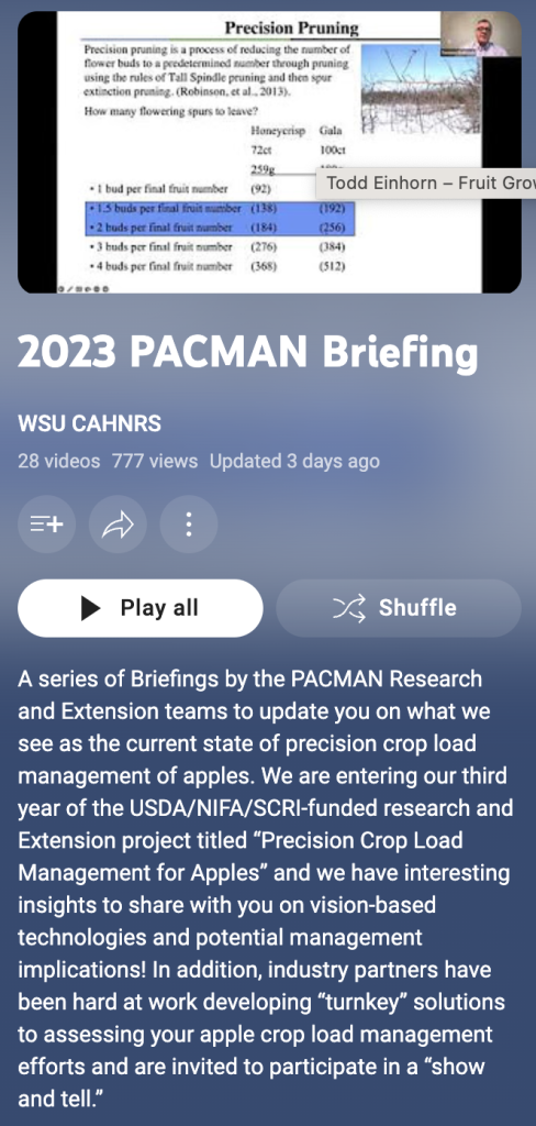 This session provides updates on engineering-related research that looks to the future for apple crop load management. See what is being developed for further sensing and automation to assist with orchard production. Presentations are provided by researchers at Cornell University, Penn State, University of Florida, and Moog, Inc. These will be in a short 10-minute format, with time for questions and discussions at the end.